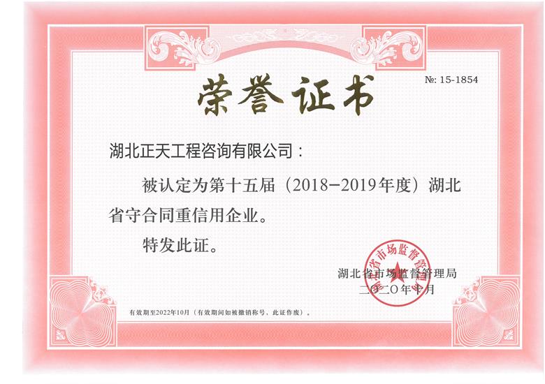 湖北省第十五届(2018-2019年度)“守合同重信用”企业